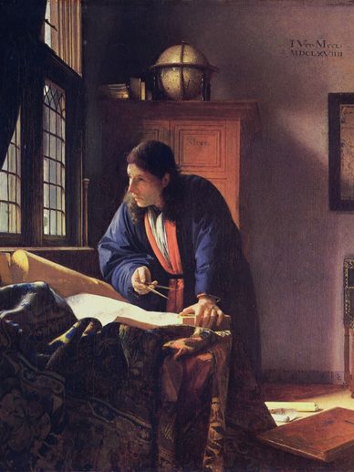 It is not surprising that Vermeer was attracted to the sciences. The parallel growth of art and science during the Dutch Golden Age was unlike any other time in history. Vermeer portrayed scientists at work in The Astronomer and The Geographer. In both of these paintings, he used Anthony van Leeuwenhoek as a model.